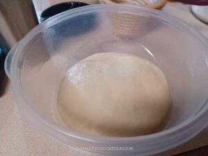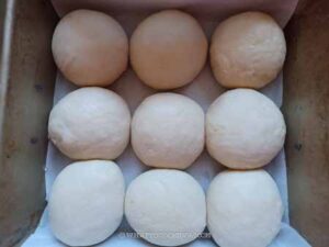 Place this dough in a lightly oiled large bowl, cover it with a clean and damp tea cloth or plastic wrap and let it rise at a warm place for about 1 hour. The dough will puff up and double in volume.