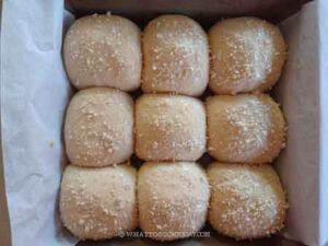 Remove from the oven and let them cool in the pan set on top of cooling rack before serving. Some of the filling may leak out if you don't seal the dough properly, but no worries, once the buns have cooled down, the filling will set and won't be as messy to eat