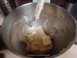 Gradually add the butter, one pat at a time. It is a REAL sticky mess again because of the butter, just keep kneading and stop halfway and scrape the dough off the hook and bowl again and continue to knead until the butter is absorbed by the dough. Don't add any flour.