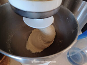 Mix all the dry ingredients together in a mixing bowl. Make a well in the center and pour in the wet ingredients and the tangzhong. Use a dough hook to stir it roughly so that when you start the machine, the flour won't fly all over.