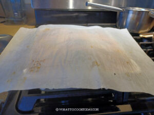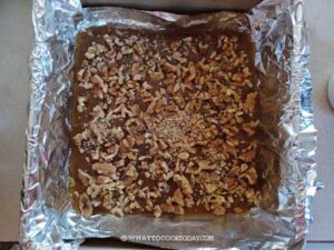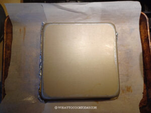 Lightly oil your pan, I used a 9 x 9 inch square pan and line the pan with a heavy-duty aluminum foil, covering the bottom and the sides, corner to corner. Apply oil on the foil to prevent sticking. You can also use a non-stick cooking spray.