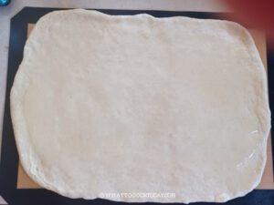 On a lightly floured surface, roll the dough out using a rolling pin (lightly flour the rolling pin if necessary) to a rectangle about 12 x 15 inches.