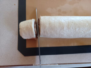 Use a serrated knife and cut the dough into 9 equal pieces.