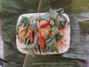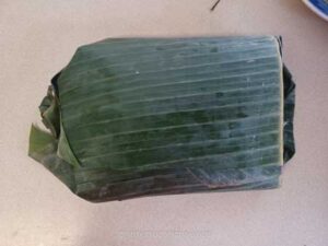 Preheat your outdoor grill or a regular large pan. Lightly brush the banana leaves with a bit of oil. Place each packet on the grill or pan over medium heat. Let it grill until the banana leaves have grill marks on them. The aroma is amazing. They are ready to be served.