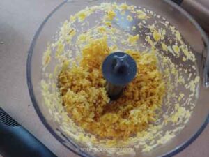 While the chicken is poaching, put ginger, onion, garlic, chili peppers, candlenuts in a food processor and process into a thick coarse paste