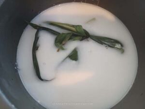 Briefly rinse the rice with clean water until it runs clear and drain the water. To a the inner pot of Instant Pot, add 3 cups of chicken broth from poaching the chicken (top up with more chicken broth or water if you don't have enough), rice, coconut cream, bay leaves, pandan leaves, lemongrass, and salt. Give it a stir.