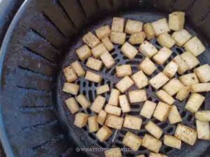 Cut the tofu into 1-inch cubes. I sprayed them with a bit of non-stick spray and air fry them in the air fryer at 350 F (180 C) for 10 minutes or until light golden brown and crisp. You can also deep fry in oil until golden brown. Set aside
