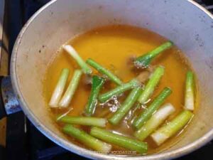 Preheat about 1 Tbsp of oil in a large skillet. Stir fry the garlic and shallots in the oil until fragrant, about 3 minutes.