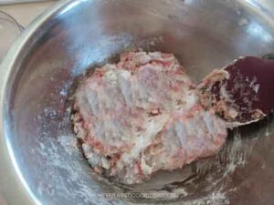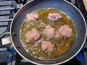 Fry the kekian udang when you are ready to serve nasi bakmoy. Preheat about 1-inch of oil over medium heat. When the oil is hot, use a spoon to scoop the shrimp paste and drop it into the hot oil. You can cook 3-4 pieces at a time.