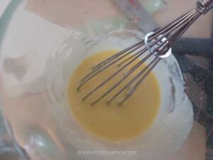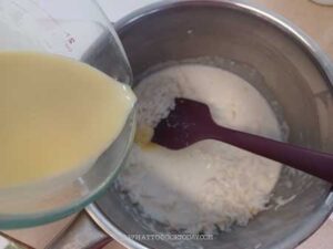 Continue to stream in the rest of the egg mixture to the coconut milk mixture and continue to whisk at the same time