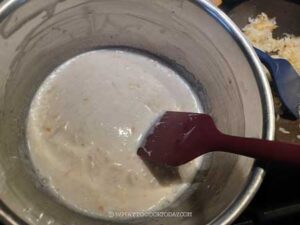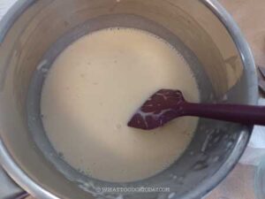 Put the saucepan back on the stove and continue to cook over medium-low heat while continue whisking. Cook until the mixture is gently simmering and bubbly, about 4-5 minutes