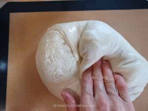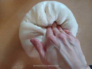 Work with one dough at a time. Gently flatten the dough and then pull and tuck the dough from the edge to the center to form a tight dough ball