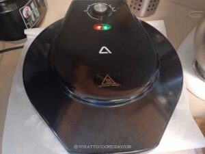 Let it bake for about 8-10 minutes and the bottom should be just lightly golden brown. Use a rubber spatula to help you flip the dough over. Close the lid and cook for another 5 minutes. If you use a different brand pizza grill/griddle, your time may vary. So, you need to experiment a bit