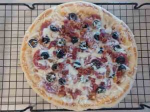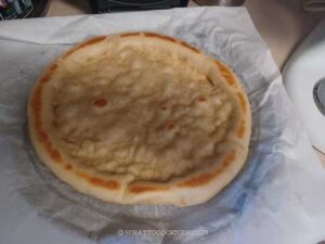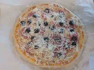 You can pre-bake the crust up to this point, let it cool completely on the cooling rack and then wrap it with a cling wrap and another layer of aluminum foil. Keep this in the freezer for up to one month. You can prebake without thawing, but you may need to add 2-3 minutes extra (or more) to the baking time. Then proceed to dress the pizza step