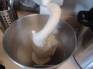 Put all ingredients for the dough in a mixing bowl of a stand mixer fitted with a dough hook attachment. Use the hook to stir the ingredients together so the dry ingredients won't disperse all over when you start the machine