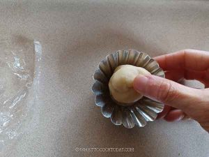 Preheat oven at 375 F (190C) for a conventional oven. Lower the temperature by 20 degrees if you use a convection oven. I don't have sandbakkels tin molds and I just use the regular mini tart tin I used to make egg tart. Oil each tin or use non-stick cooking spray. Wipe off any excess