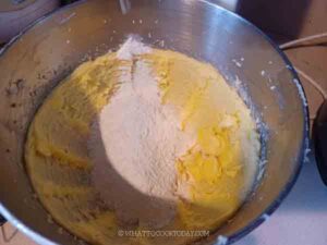 Cream room temperature butter, powdered sugar, light brown sugar, and granulated sugar for about 3 minutes over medium-high speed until light and fluffy. If you are using a standmixer, use a paddle attachment.