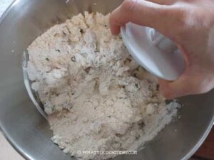 Start mixing at low speed (speed 2 on KA) to mix all the ingredients for about 2-3 minutes to form a rough dough.
