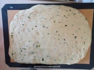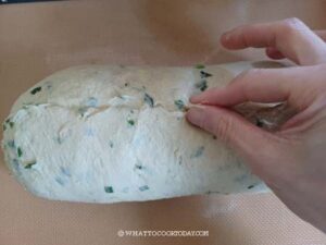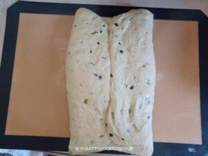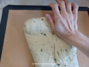 Use your hands to pat the dough out into a 10 x 12 inch rectangle. You can use a rolling pin to do so. Make sure you push out all the air. If the dough keeps retracting back, stop rolling and cover the dough with plastic wrap and give it a rest for 5 minutes to relax the gluten and try to roll again