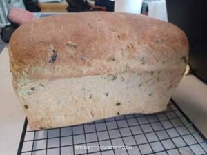 Let the bread cool down completely on the rack, this may take 2-3 hours. Do not cut into a warm bread