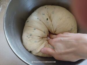 Round up the dough and put it in a lightly oiled bowl. Cover the bowl and put it in a warm place, around 82-90 F, and let it ferment until it doubles in volume, about 1 – 1 1/2 hours (this time varies depending on temperature). When you poke your finger into the dough, the indentation stays and the dough doesn't collapse