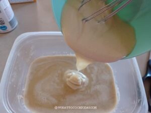 Whisk again to loosen up the starter until it combines. Add the milk and vanilla and whisk again to combine