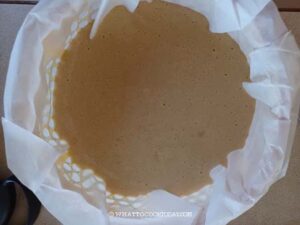 Pour the cake batter into a prepared bamboo steamer or cake pan.