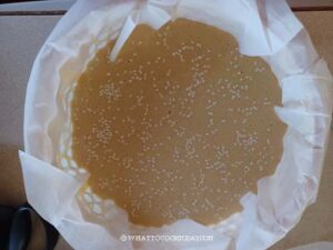 Put some thin slices of almond or melon seeds on top if you like. I use white sesame seeds this time