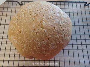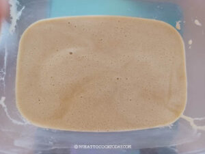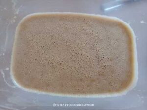 Cover the bowl and let the batter proof at a warm place (about 82 F/28 C) and let the batter proof until you see lots of tiny bubbles on the surface, about 2 1/2to 3 hours at the mentioned temperature. The sourdough version won't be as foamy and bubbly compared to ma lai gao made with yeast