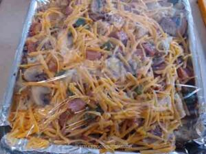 Repeat with remaining bread, mushroom-ham mix, cheese, and custard.