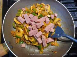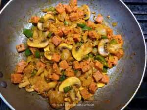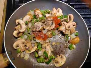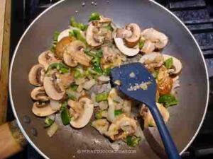 Sauté onion and garlic for about 1 minuts. Add the Jalapeno peppers, mushroom and saute for another 3-5 minutes or until mushrooms are tender and no liquid remains