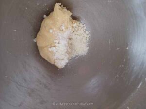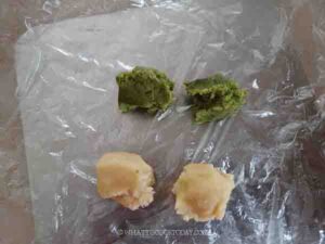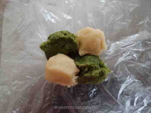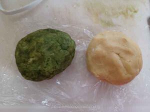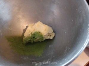 Divide the dough into two. Add half of it back into the bowl and add matcha powder and beat just until combined