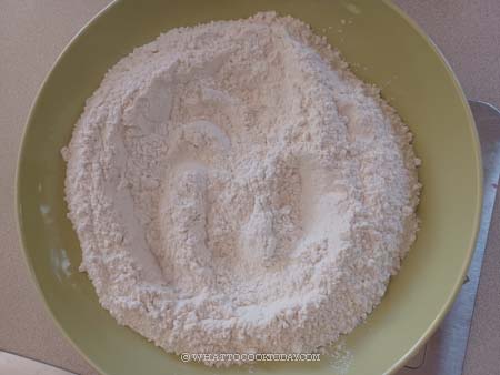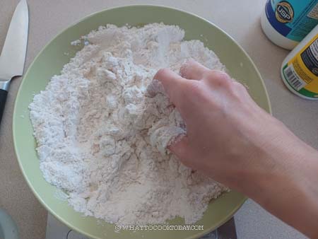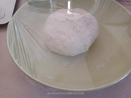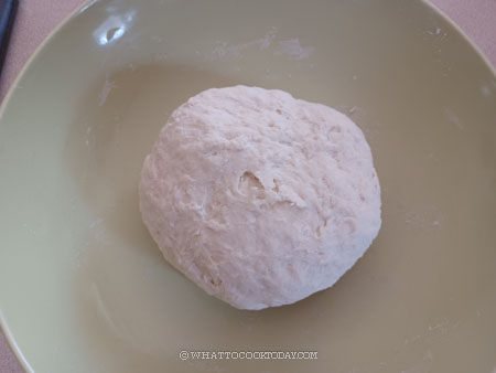 2. Knead into a rough dough. Make sure all the flour is hydrated. If the dough feels dry, add water, one teaspoon at a time. You should be able to form a rough dough.