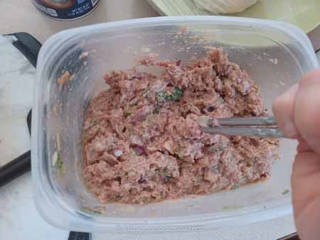 - Add the beef into a large mixing bowl. Add 1/4 cup of the water and stir to work the water into the beef, then add another 1/4 cup and mix until the beef is moist