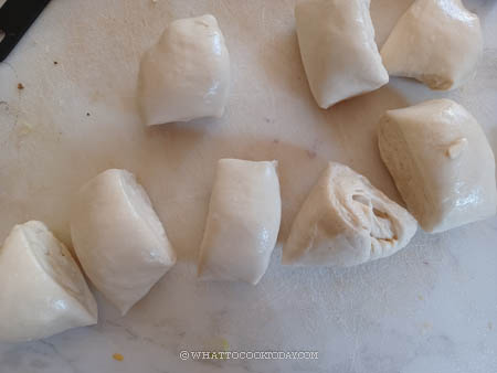10. Place it seam side down and flatten the dough slightly with your palm. Repeat with the rest of the dough and the filling