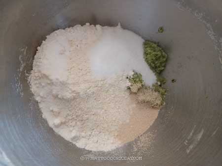 4. Combine all the ingredients for the dough in a mixing bowl of a standmixer.